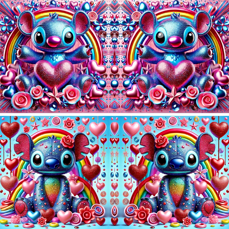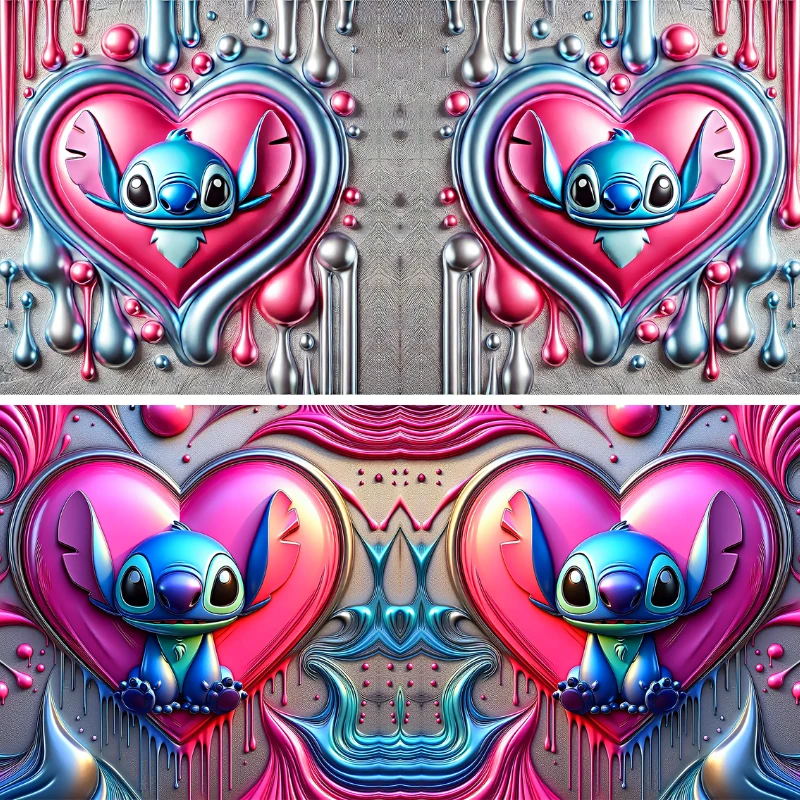 Este produto é um produto digital exclusivo contendo artes gráficas com efeito 3D realístico. Cada design foi pensado para simular profundidade e texturas vibrantes na cerâmica. Como o tema Lilo & Stitch é um sucesso atemporal, essas estampas garantem um visual moderno e muito atrativo para o seu catálogo de vendas.