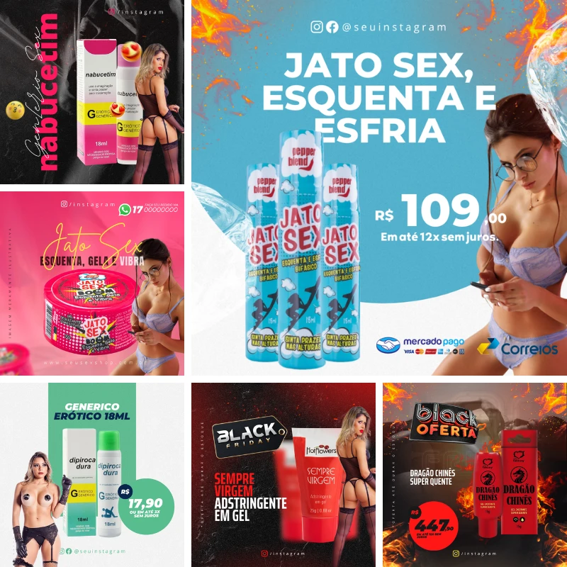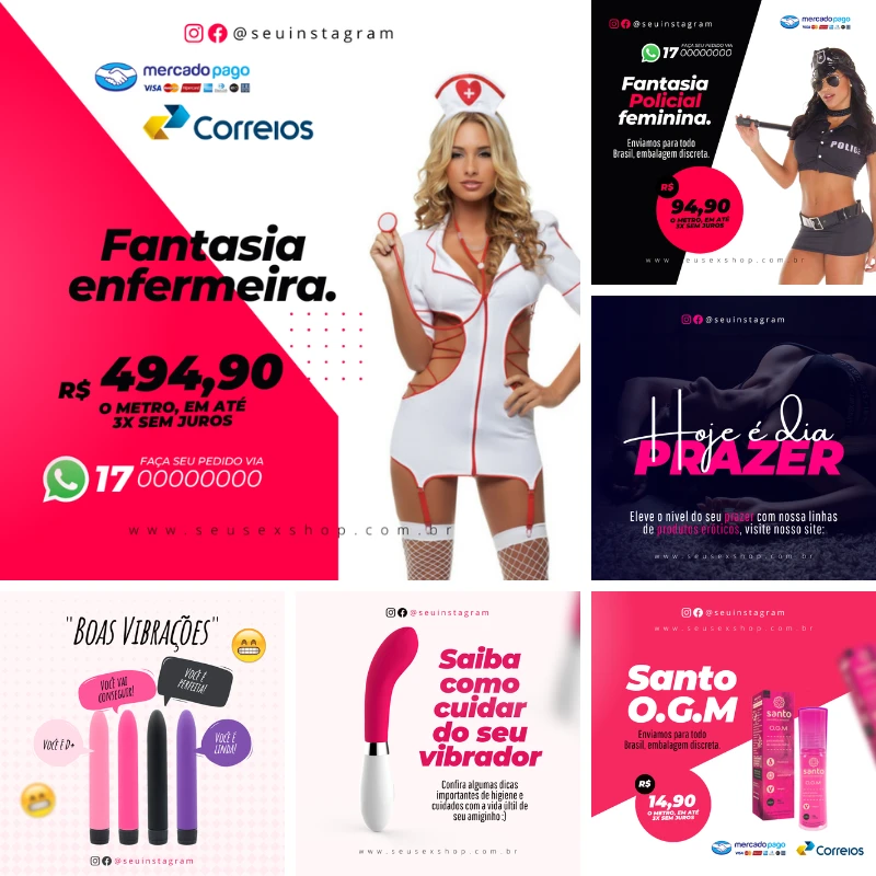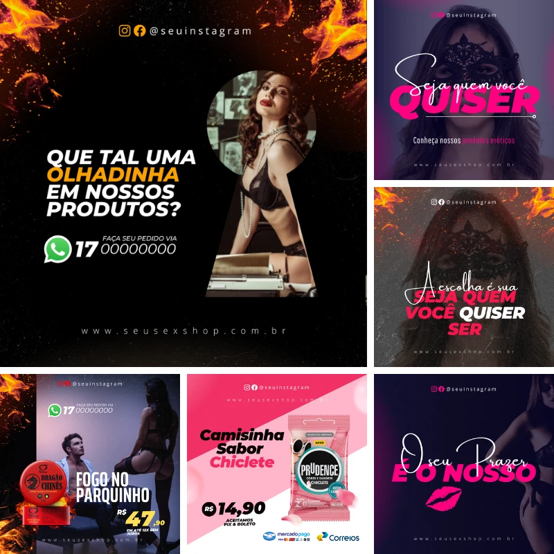 50 Artes Canva Sex Shop é um pacote com 50 artes 100% editáveis no Canva, desenvolvido para lojas virtuais e físicas do segmento adulto. Você pode personalizar textos, cores e imagens, mas sem precisar saber design, então seus posts ficam profissionais porque seguem tendências atuais.