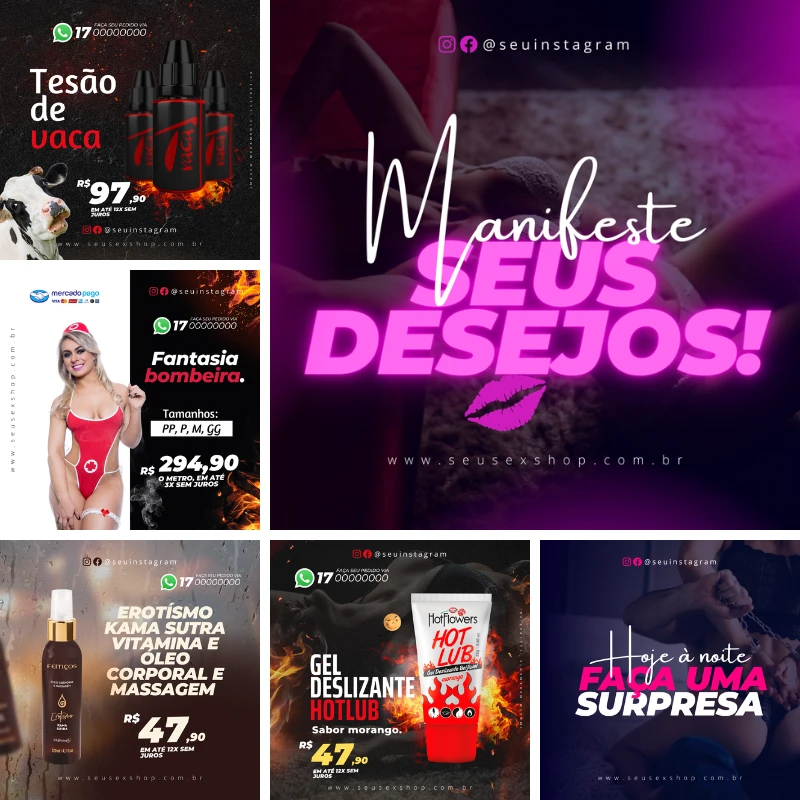 Garanta agora o 50 Artes Canva Sex Shop e transforme sua divulgação online. Aproveite para criar conteúdos profissionais em minutos, mas também aumentar suas vendas, então comece hoje mesmo porque seu negócio merece destaque!