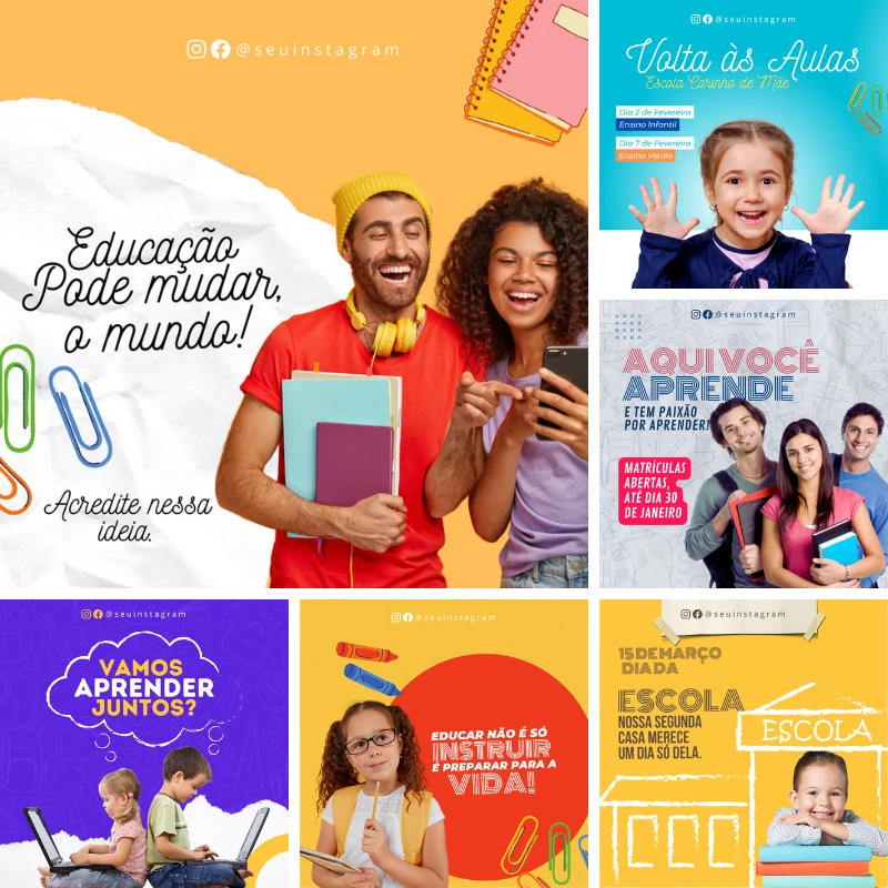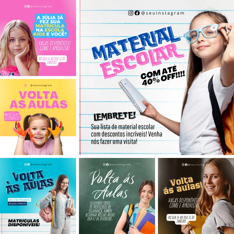 Você receberá acesso a 69 artes 100% editáveis no Canva, todas com tema escolar e prontas para personalização. Então, poderá usar os layouts em redes sociais, murais digitais, avisos internos e campanhas educacionais, porque os arquivos são versáteis e adaptáveis a diferentes formatos.
